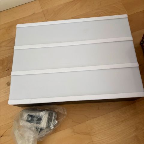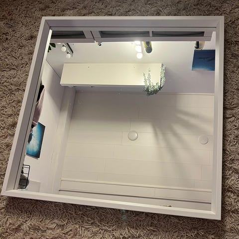 Valopeili, josta toinen loisteputki hajonnut. Näitä putkia on tosi haasteellinen löytää - voi käyttää ihan tavallisena peilinä tai voi askarrella noiden valokohtien taakse esim. Led-nauhaa (vaatii muuntajan vaihdon). Kommenteissa lisäkuvia.