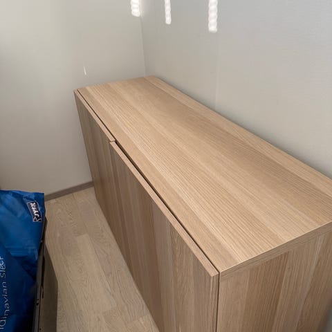 Alunperin kissanvessaksi tuunattu Ikean Hauga senkki / kaappi. Kissa ei vaan tykännyt mennä sisään, niin tuli oikeaan tarkoitukseensa. Ei siis ole käytetty kissanvessana hetkeäkään.