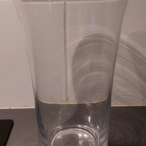 Virheetön. 25 cm korkea, suuaukon halkaisija 14 cm.