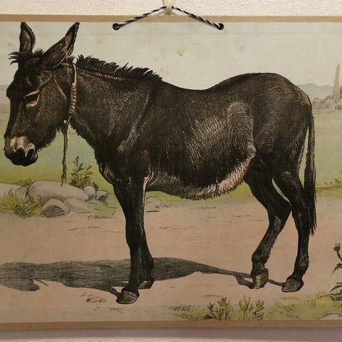 Hieno, koulukäytössä ollut pieni opetustaulu apinoista