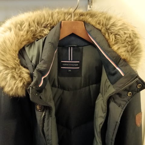 Huippulaadukas Tommy Hilfiger pitkä miesten toppatakki XXL musta