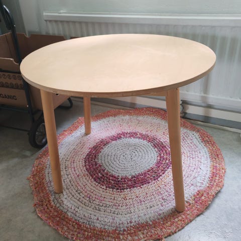 Sohvapöytä, neliömäinen malli. Pöydässä on puinen pöytälevy ja tummemmat puujalat. Sopii olohuoneeseen sohvapöydäksi tai sivupöydäksi. Pöytä on suunniteltu sisäkäyttöön ja tarjoaa tasaisen pinnan esimerkiksi kirjoille, lehdille ja tarjoilulle.
