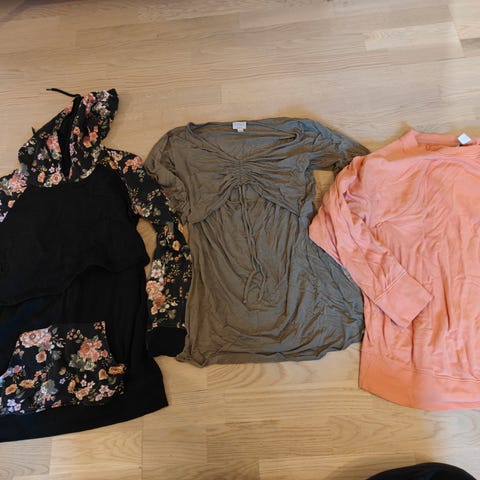 Myydään boob imetys t-paita, kaksi anna field merkin toppia sekä musta pitkähihainen paita, joka sopii hyvin imetysaikaan.