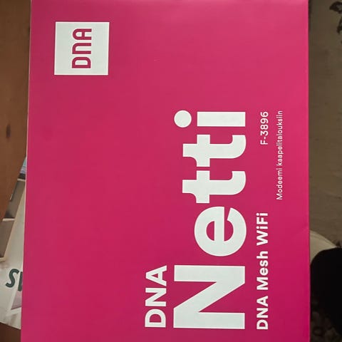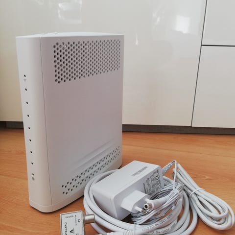 DNA kaapelimodeemi 3686 V2. Mukana virtalähde ja verkkokaapeli.