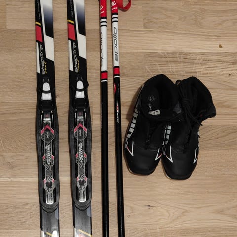 Maastohiihtosetti sukset, monot ja sauvat