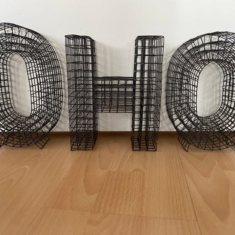 Kaksi puista seinäkoristetta. Isompi korkeus 60 cm ja pienempi 27 cm