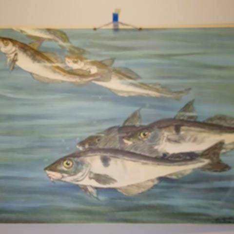 Hieno, koulukäytössä ollut opetustaulu kaloista