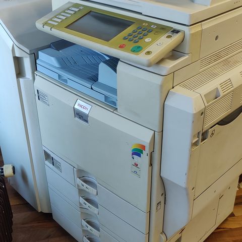 A3 väritulostin / scanneri. Kovalevy rikki ja sen takia myös firmware puutuu. Kovalevyn vaihto on kohtuu helppo ja firmware löytyy muutamalla kympillä. Mukaan kayttämättömät mustekasetit kaikkia värejä. Värit tosi riittoisia.