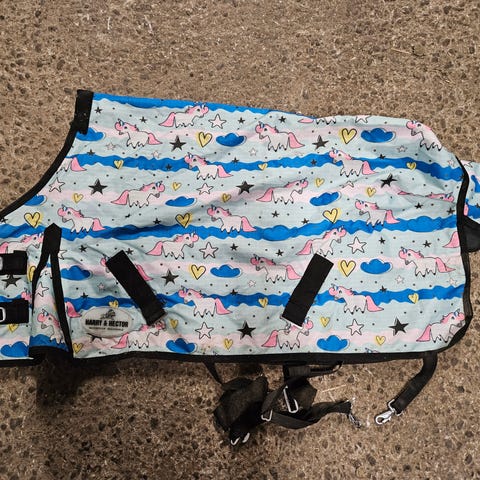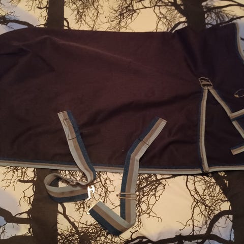 Kaksi ponin sadeloimea, koko 85 cm. Molemmissa ohut vuorikangas (ei fleece). Violetti ei muistaakseni ole täysin vedenpitävä ainakaan koko päivää. Ruskea/beige on pitänyt vettä hyvin. Nyt pesty koneessa, eikä tietoa onko se vaikuttanut vedenpitävyyteen. Vielä jäi likaa, joka ei lähtenyt hienopesussa.