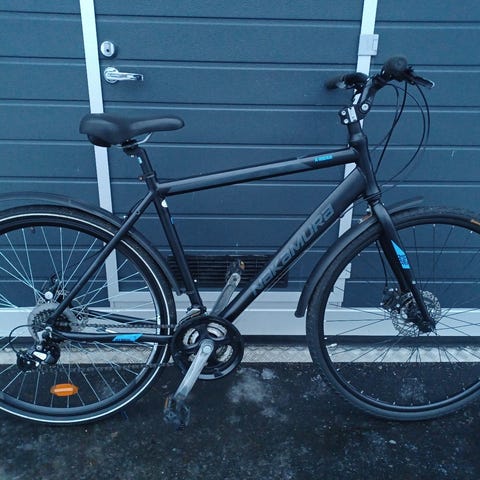 Täysin toimiva 18-vaihteinen hybridipyörä. Uusi satula, vaihdevaijerit ja jarruvaijerit. Renkaat 28". Runkokoko 52 cm (suositus yli 170 cm pituisille).
