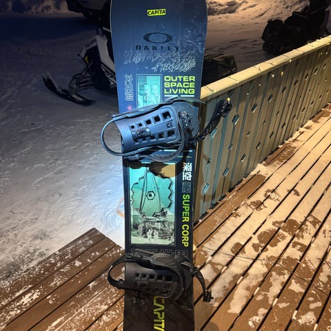 Bataleon Goliath (-23) lumilauta, pituus 158W ja leveys 26,3 cm. Laskettu ~ 10 kertaa. Pieniä jälkiä pohjassa ja kanteissa, ei mitään isompaa. Siteet Union Strata.