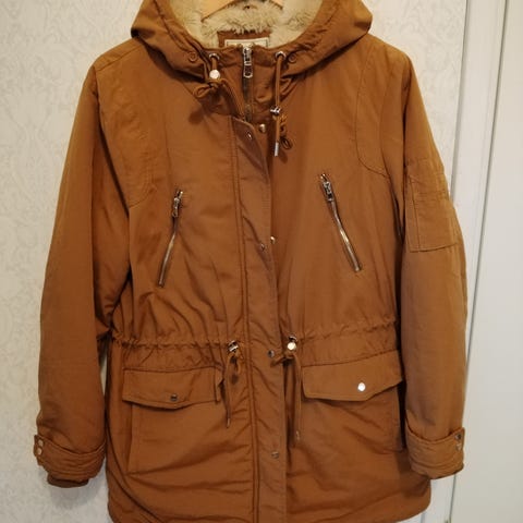 Punainen hh- talvitakki. Hihoissa pientä tummentumaa, joka ei lähtenyt pesussa (en koittanut tahranpoistoaineella), muuten erittäin hyvässä kunnossa. Olen ostanut tämän itse käytettynä, ja luulen, että edellinen omistaja on vaihtanut alkuperäisen vetoketjun uuteen. Mitat ry 55cm, olka/helma 88cm.