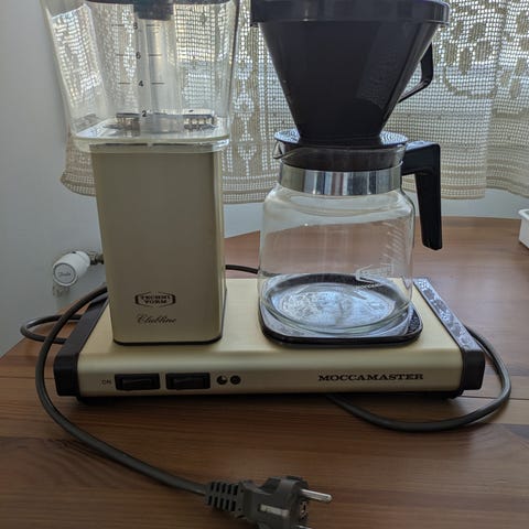 Moccamaster kahvinkeitin musta, jossa läpinäkyvä vesisäiliö ja lasinen kahvikannu. Laitteessa on erillinen suodatinosa ja lämpölevy kannun alla. Sopii suodatinkahvin valmistukseen kotikäyttöön. Rungon väri on musta ja kannussa on muovinen kahva sekä kansi. Vesisäiliö on irrotettava ja siinä on kansi helpottamaan täyttöä ja puhdistusta. Tippalukollinen.