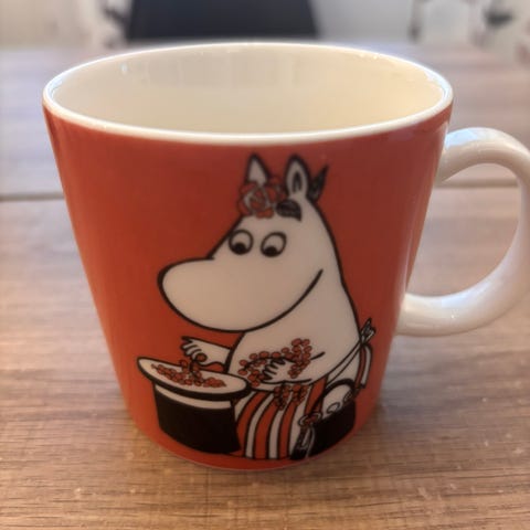 Arabian oranssi Muumimamma-muki. Kunto erinomainen, ei ole ollut paljoa käytössä. Pohjassa näkyy vähäisiä käytönjälkiä.