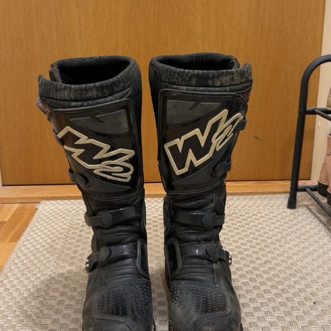 Leatt Boot 4.5 motocross-saappaat. Koko EU 44,5 (UK 10). Valkoiseen pinttinyt likaa, voi olla että jollain lähtisi. Muuten hyvässä kunnossa. Kaikki soljet ehjiä. Todella mukavat jalassa.