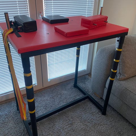 Venum nyrkkeilyhanskat ovat musta–punaiset ja soveltuvat nyrkkeilyyn, potkunyrkkeilyyn ja kuntonyrkkeilyyn. Hanskoissa on tarrakiinnitys ranteen tukemiseksi. Yhdistelmä sopii monipuoliseen kotiharjoitteluun, jossa voi yhdistää voimaharjoittelun ja nyrkkeilyharjoitukset. Mukana vielä leuanvetotanko.
