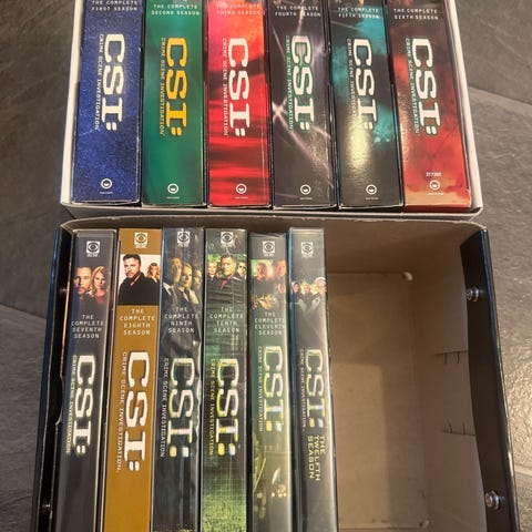 CSI: NY dvd-sarja. Tuotantokaudet 1-8 rikossarja CSI: NY:stä dvd-levyinä. Osa bokseista vielä muoveissa.