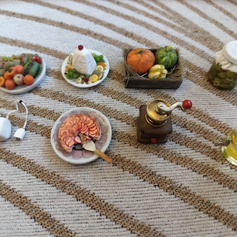 1:12 kokoisia nukkekotitavaroita +nukkeja +taloja (en tiedä tarkkaa mittaa)