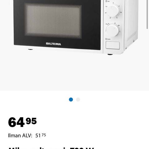 Helppokäyttöinen mikroaaltouuni selkeällä mekaanisella ohjauksella. Kompaktissa mikrossa on 20 litran tilavuus ja 800 W:n maksimiteho. Valittavissa viisi eri tehotasoa eri tarpeiden mukaan. Selkeällä mekaanisella ajastimella lämmitysaika on valittavissa 1-35 min. väliltä. Sulatustoiminnolla pakasteet saadaan sulatettua nopeasti.