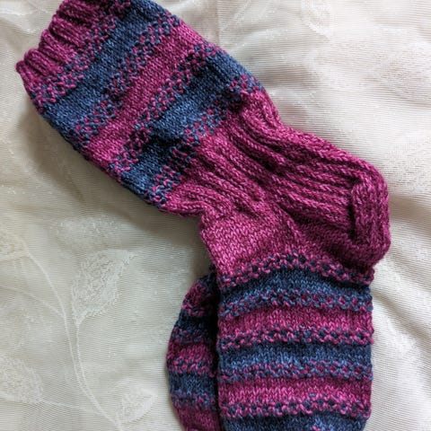 Kirjavalla langalla neulotut villasukat, varret valepalmikkoa. Terän pituus 25 cm, ja varren pituus 17 cm. Villaa 75%, ja keinokuitua 25% . Postitus kirjeenä 5,50€.