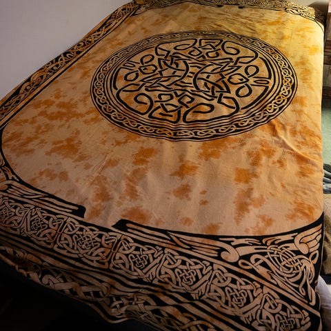 Myydään iso seinäkangas, voi käyttää myös vaihtoehtoisesti vaikka päiväpeittona. Astrologia aiheinen kuva. Koko n. 200×130cm. Kuvassa väri hieman haaleampi mitä luonnossa, jostain syystä puhelimen kamera haalentaa sävyä. Luonnossa väri taittaa hieman laguunin siniseen. 🙂 OVH 39e erinomainen kunto.