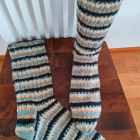 Lyhyt vartiset sukat, koko 38-39. Neulottu Novitan 7-veljestä langasta, 80% villaa 20%polyamidia. Menee leveäänkin jalkaan. Nouto tai postitus seurantakoodilla +6 90€,