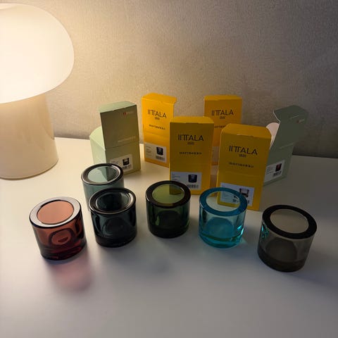 Iittala Kivi tuikkukipot monivärinen lasi. Kuvissa useita erivärisiä lasisia tuikkukippoja, jotka soveltuvat tuikkukynttilöille. Kivet ovat paksua värilasia ja niitä voidaan käyttää sisustuselementtinä ympäri vuoden eri tiloissa, kuten olohuoneessa, ruokapöydällä tai ikkunalaudalla. Monivärinen kokonaisuus mahdollistaa erilaisten kattauksien ja asetelmien kokoamisen muuhun sisustukseen sopivaksi.