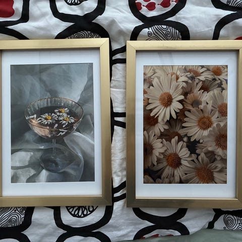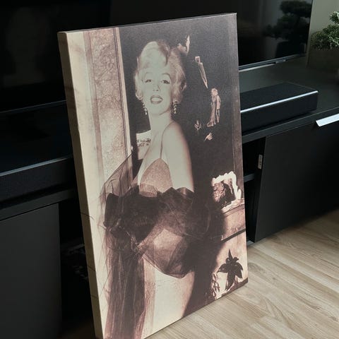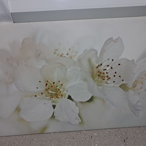 Ikean iso kukkataulu. Kiinnike irronnut toiselta puolelta säilytyksessä, mutta korjattavissa. Muovissa jotain naarmuja läheltä katsottuna.