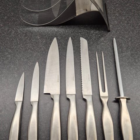 Hackman veitsisetti, jossa kokkiveitsi ja lihahaarukka. Molemmat osat ovat ruostumatonta terästä ja niissä on teräksinen kahva. Toimitetaan alkuperäisessä pakkauksessa kuvien mukaisesti.