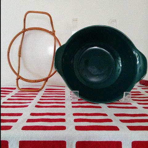 Arabia "KILTA" vihreä astia rottinkikorissa. astian halkaisija 17 cm