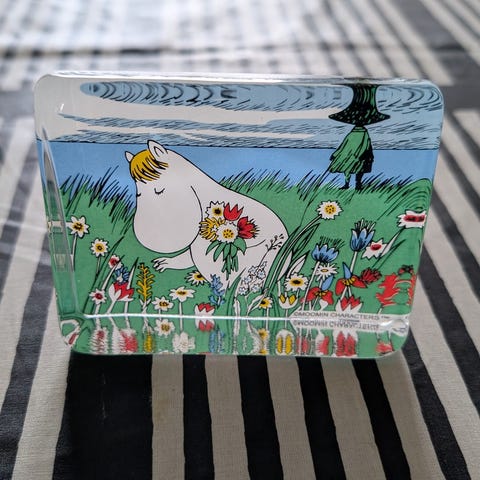 Hyväkuntoinen Iittalan muumi lasikortti.