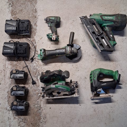 Hikoki akkuporakone ja hitachi pulttipyssy. Mukana useita bittisarjoja ja hylsysarja, joissa erikokoisia ruuvaus- ja hylsykärkiä. Työkalut soveltuvat esimerkiksi ruuvaus- ja poraustöihin sekä muttereiden ja pulttien avaamiseen ja kiristämiseen. Akkukoko ja tarkemmat mallitiedot eivät käy ilmi kuvista.