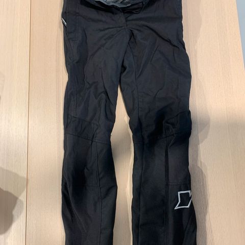 Yoko ajohousut. Housuissa on useita vetoketjullisia ja läpällisiä reisitaskuja. Ollut käytössä kevytmoottoripyöräiässä 2 vuotta, paino ollut tuolloin noin 70kg ja pituus 185cm. Huom. Housuissa etupuolella nuppineulanpään kokoinen reikä, näkyy viimeisessä kuvassa.