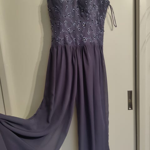 Kuvissa oleva pitkä iltapuku, väri violetti, ohuet olkaimet, takana selässä kaunis ristikko jossa koru, mekossa vuorikangas polveen asti. pesu 30 asteessa, Sopimuksen mukaan voin postittaa, kulkeutuu myös Vaajakoski-Jyväskylä suuntaan.