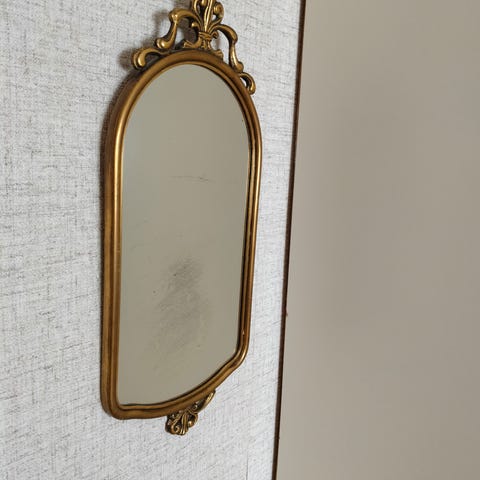 Vanha hyväkuntoinen peili, korkeus 73cm, leveys yläosassa 38cm