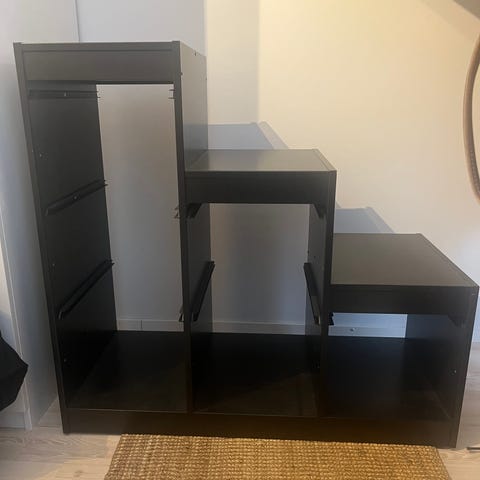 Ikean valkoinen trofast -hylly ilman laatikoita. Koiratalous.