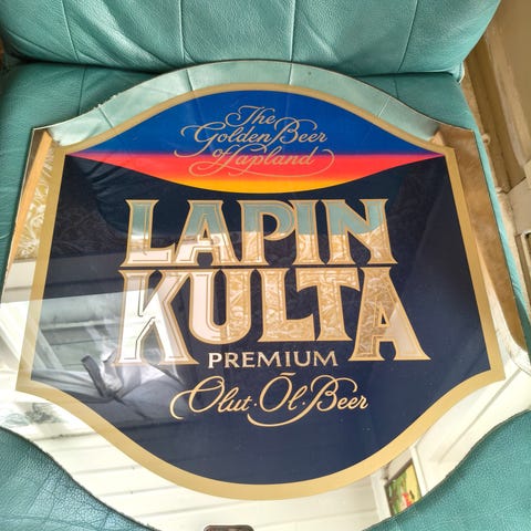 Lahden olutaiheinen peilitaulu puukehyksellä. Taulussa on peilipinta ja painettu Lahden-olutlogo koristeellisilla yksityiskohdilla. Puinen kehys on suorakaiteen muotoinen. Sopii esimerkiksi sisustuselementiksi kotiin, baariin tai harrastetilaan seinälle ripustettavaksi. Koko l 46.5 cm k 61.5 cm