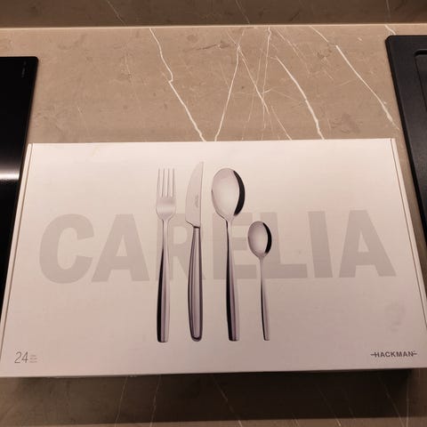 Myydään Hackman Carelia lahjapakkaus 24- osainen ateria setti. Tuote täysin käyttämätön avattu vain kuvia varten.