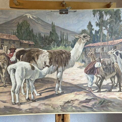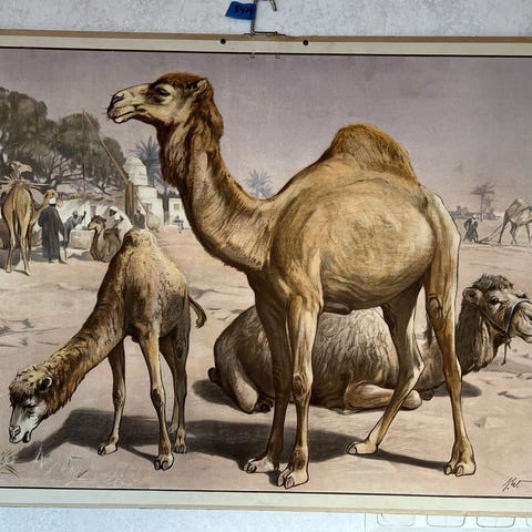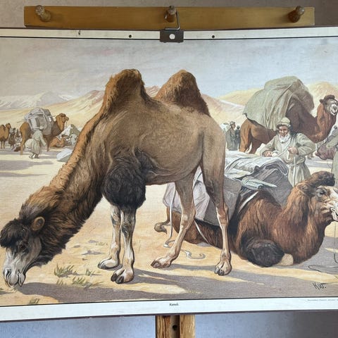 Hieno, koulukäytössä ollut opetustaulu lehmän ja sian anatomiasta "Selkärankaisten luuston rakenne"