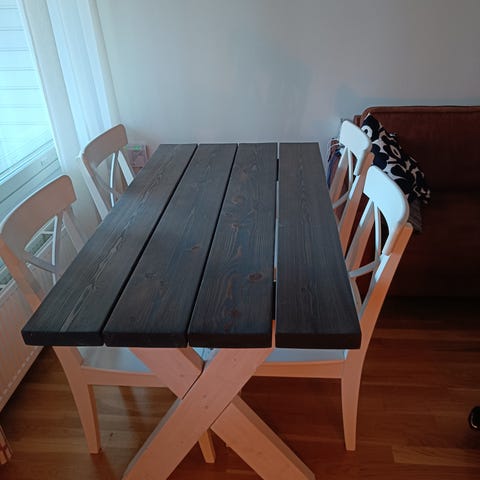 Tarjoa, mikäli nurkissasi pyörii vaalea lankkupöytä johon olet jo itse kyllästynyt.