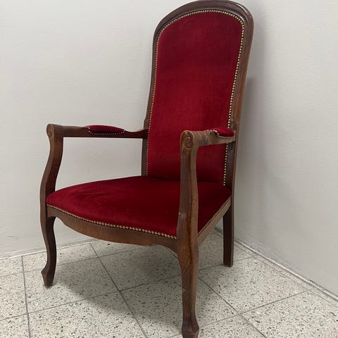 Ikäisekseen hyvässä kunnossa oleva nojatuoli pari. Musta runko, oranssi verhoilu.