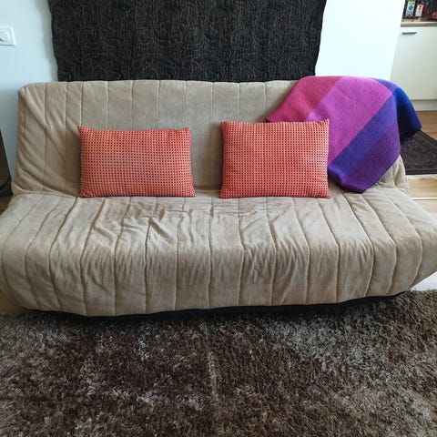 Annetaan vaalea iso vuodesohva. Tahroja on.