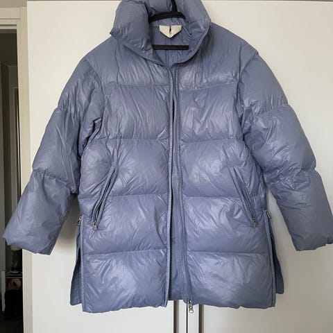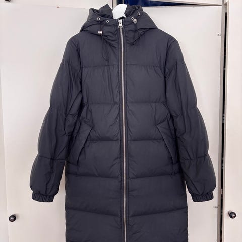 Arket naisten pitkä untuvatakki koossa S, sanoisin että täydellinen 38 kokoa käyttävälle tai hieman oversize 36 kokoa käyttävälle.