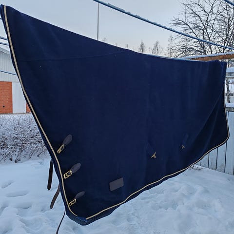 Ruskea ja paksu villaloimi 155cm (on ollut käytössä 165cm puoliverisellä kuljetuksessa/alku-ja loppukäynneillä). Ehjä ja siisti loimi (ovh n.130€)