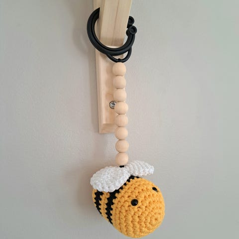 Vaunulelu. Villalangasta virkattu itse. Kuminauha sisässä, joten menee mihin vain vaununuun tai koppaan.