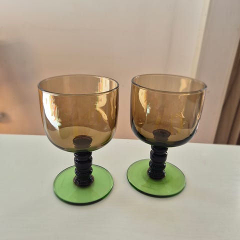 Erittäin hyvä kuntoiset vaaleanpunaiset kuohuviini lasit. Pari ilmakuplaa.