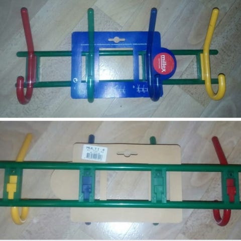 Valkoinen naulakko 4:llä koukulla. Mukana ruuvit.