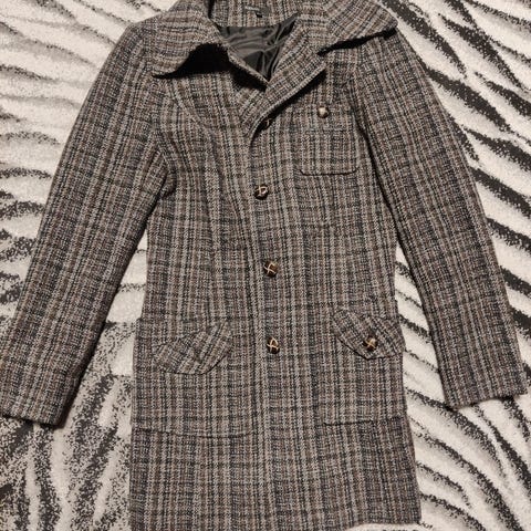Happy Holly naisten pitkä takki koossa S. Väri musta. Takissa on tikattu pinta, täyspitkä vetoketju edessä sekä sivutaskut nepparikiinnityksellä. Hupussa on tekoturkisreunus. Kunto hyvä