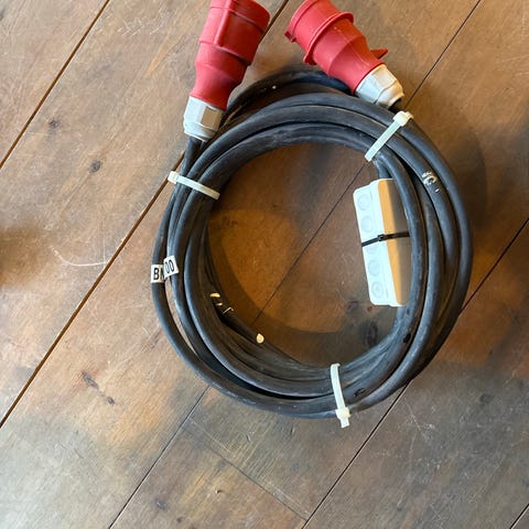 Kuvan voimavirtajohdot, pituudet noin 20m ja 30m. Kuvissa matka ovelle n 9m. Päät kuvattu, toista johtoa korjattu matkanvarrella.