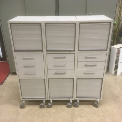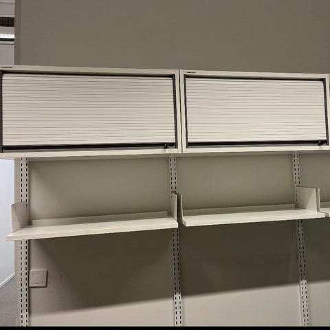 Martela Combo rulokaappi, 166x42x80 cm, runko ja hyllyt valkoinen, rulo-ovi harmaa. 10 kpl / 100€/ kpl kuljetus korvausta vastaan mahdollinen
